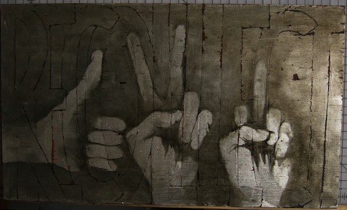 3) recollect, 12 x 20 in, oil on silver leaf on plywood